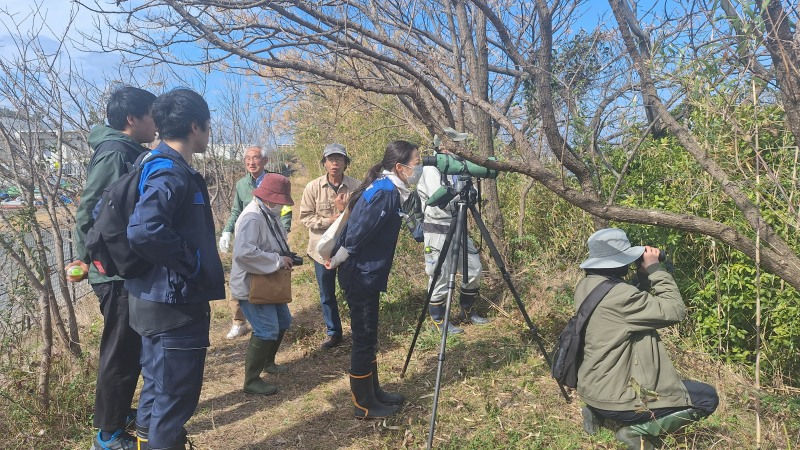 この日は清掃が終わった後に、中州で休息するクロツラヘラサギを観察しました。